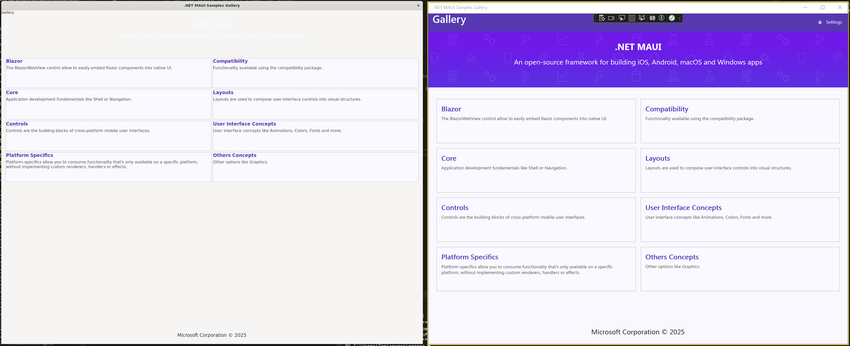 .NET 10 Preview Version on the right Maui-Linux Version on the left