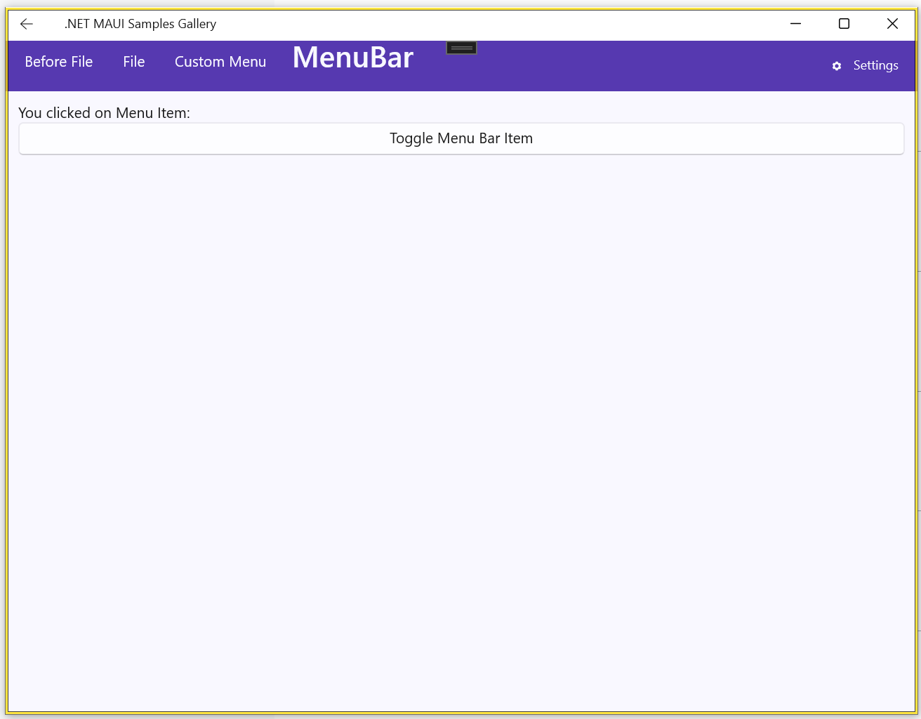Maui Sample Project MenuBar Page